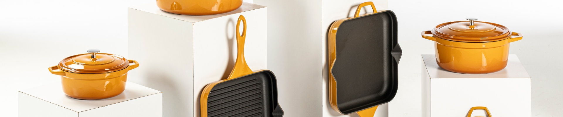 Gult støbejerns køkkengrej